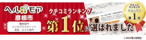 南彦根エリアで地域に根差した整体院。 初めて整体を受ける方でも安心できる環境づくり。24時間ネット予約と土日祝日も営業の安心感。完全予約制で待ち時間ほぼゼロ、忙しいあなたのための整体院です。