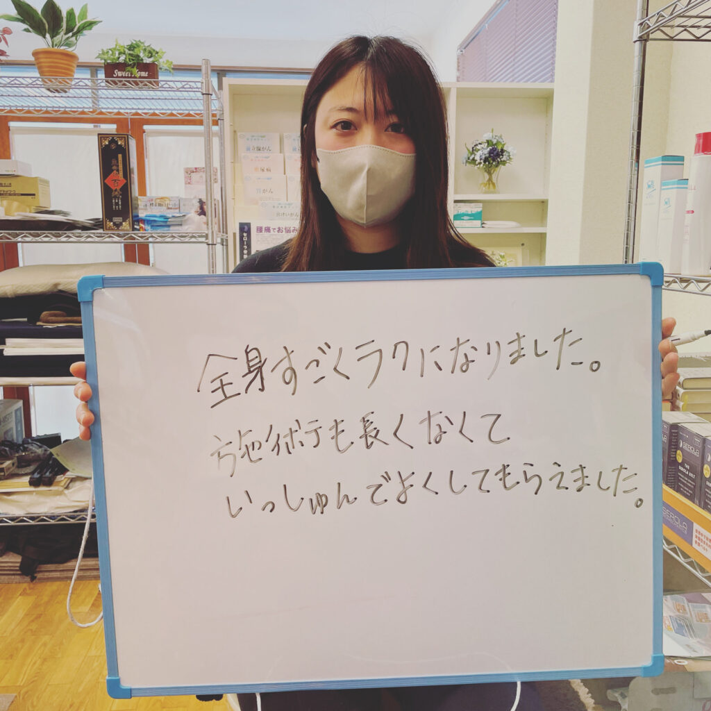 施術者が毎回変わらないため安心。 状態の変化を継続的に把握しながら施術できる。 個別性に合わせたオーダーメイド対応が可能。